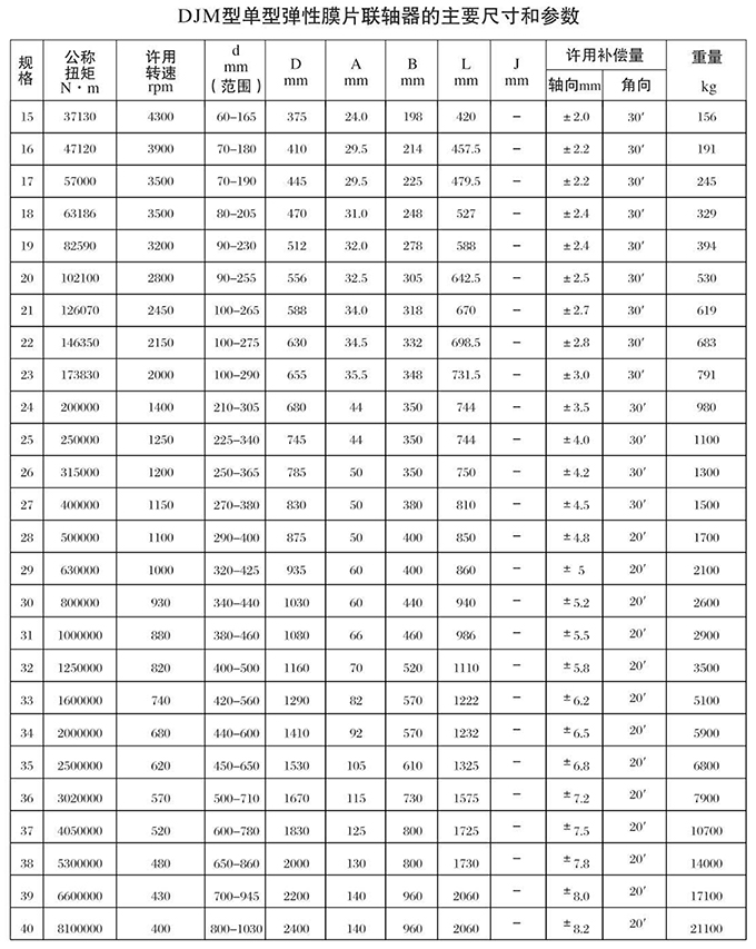 您當前的位置:首頁 / 產品展示 / 蛇形聯軸器系列 / DJM型鍵聯結單型彈性膜片聯軸器