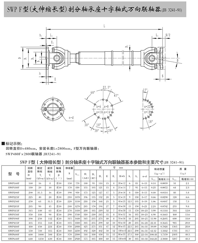 SWP F型(大伸縮長型)部分軸承座十字軸式萬向聯軸器