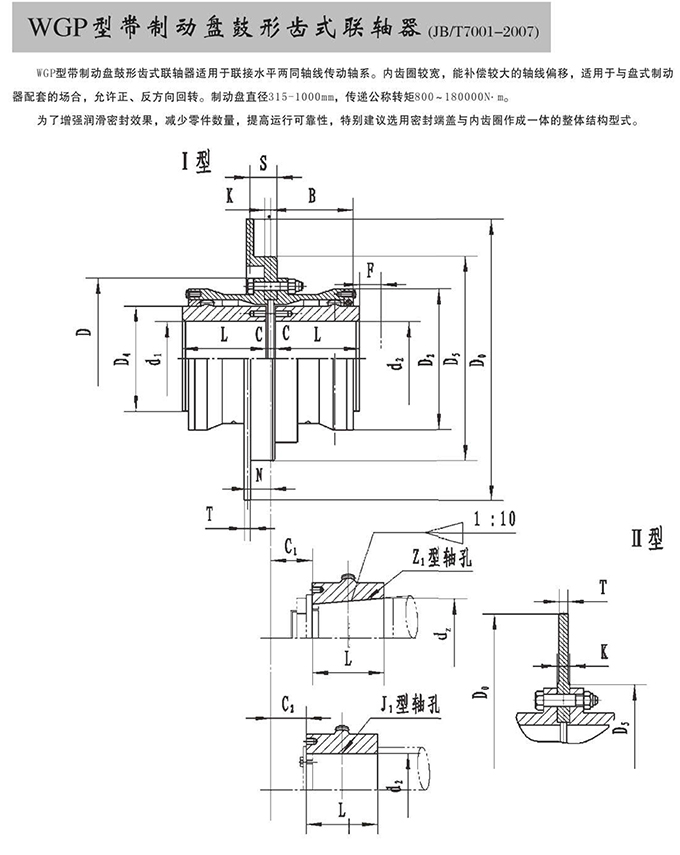 瑞安市寶德隆機械配件有限公司提供WGP型帶制動盤鼓形齒式聯軸器具有拆裝方便,快速安裝等特點,廣泛用于連接/固定輪轂孔和零件的軸,例如齒輪,錐齒輪,鏈輪,葉輪,凸輪,皮帶輪和飛輪等軸的聯結固定,咨詢電話:18906872378